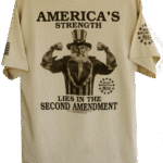 - PRINTED IN FOUR LOCATIONS: FRONT, BACK, AND BOTH SLEEVES, (PLUS A PRINTED NECK LABEL FOR COMFORT, FEATURING THE SECOND AMENDMENT MILITIA LOGO)
