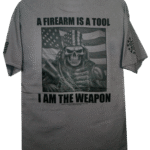 This design features our Patriot Skeleton Soldier with his AR at the ready. These days so many unknowledgeable gun haters refer to semi-automatic weapons as “Assault” rifles. An assault rifle as most gun owners know is a fully automatic weapon designed for war. It takes a very special gun permit to buy a fully-automatic weapon, and it comes with many special requirements and restrictions. What is typiclly sold at gun shops are the common semi-automatic weapons. What seems to make them more “dangerous” in the minds of the gun grabbers is that they are black. Somehow they are “assault rifles” if they are black, unlike the wood stocked variety.