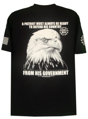 This T-Shirt features an American Bald Eagle in flight carrying an AR Style Rifle in his talons, with an American Flag waving in the backround. The quote: “DON’T FEAR GUNS, FEAR A GOVERMENT THAT FEARS YOUR GUNS”, is a statement that holds as true today as it did during the founding of our great nation. If the government allows the people their liberty, there is nothing that government needs to fear from its people. That means it is a just government. If that government fears your guns then it is commiting injustices, or tyranny against its people and it should fear your guns. The founding fathers were wise enough to include the Second Amendment in the Bill of Rights, and thus it became the Second Amendment of our Constitution. They did this for an important reason. They wanted to provide the people with the means, if necessary, and as a last resort, to overthrow a tyrannical and unjust government. We would be helpless subjects without our right to bear arms.