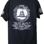 The “Don’t Tread on Me” is a historical slogan and motto, most famously associated with the Gadsden flag, which originated during the American Revolution. It signifies a warning against oppression and a declaration of independence and resistance to tyranny. The phrase, along with the image of a coiled rattlesnake, conveys a message that those who attempt to encroach upon individual liberties or rights will be met with a strong and forceful response.
