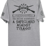 - Printed in 4 locations: Front left chest, back, and both sleeves, plus a printed neck label for comfort and features the Second Amendment Militia logo.