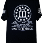 - PRINTED IN FOUR LOCATIONS: FRONT, BACK, AND BOTH SLEEVES, (PLUS A PRINTED NECK LABEL FOR COMFORT, FEATURING THE SECOND AMENDMENT MILITIA LOGO)