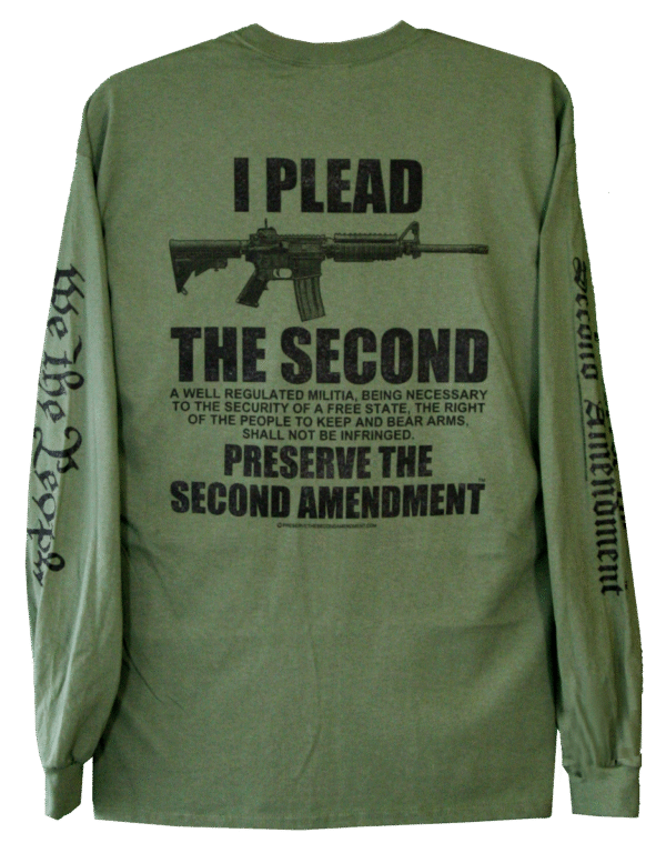 Don’t Plead the Fifth, Plead the Second!!! This Design features a strong graphic of an AR-15 with “I Plead” above it and “The Second” below it. Below that are all 27 words of the Second Amendment below that. Finally at the bottom of the design it features boldly and proudly the words “Preserve The Second Amendment”. Truly a design for today’s crazy times from Second Amendment Militia. Wear it proudly!