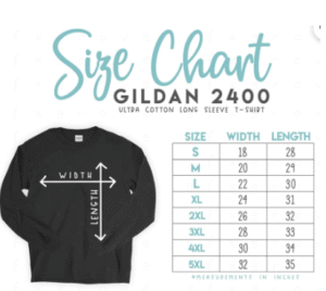 Long Sleeve Shirt Size Chart