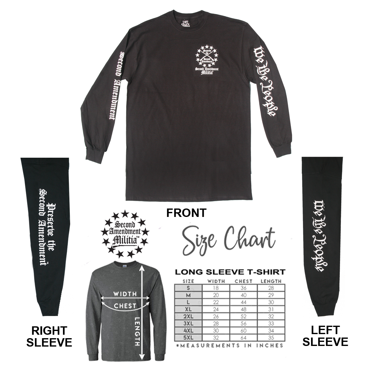 Long Sleeve Shirt Size Chart, T-Shirt Size Chart, Hoodie Size Chart — They are all located at the bottom of each product page. If you have any specific questions on how something fits just send us an email! info@Preserve2A.com