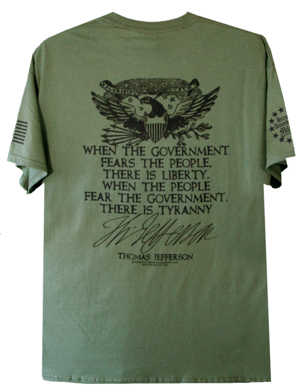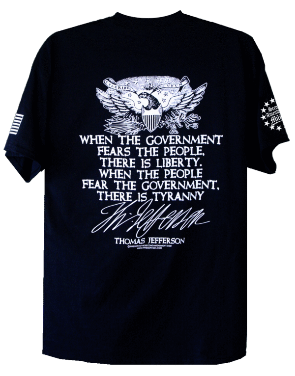 Jefferson Tyranny T-Shirt: When The Government Fears The People, There Is Liberty. When The People Fear The Government,There is Tyranny.