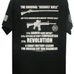 - PRINTED IN FOUR LOCATIONS: FRONT, BACK, AND BOTH SLEEVES, (PLUS A PRINTED NECK LABEL FOR COMFORT, FEATURING THE SECOND AMENDMENT MILITIA LOGO)