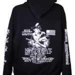 - Printed in Four Locations: Front, Back, and Both Sleeves, plus a printed neck label featuring the Second Amendment Militia logo.