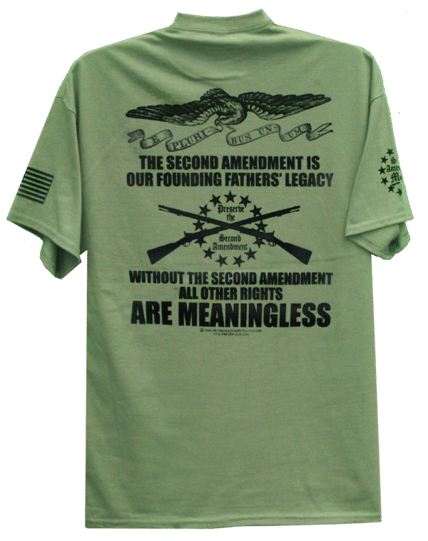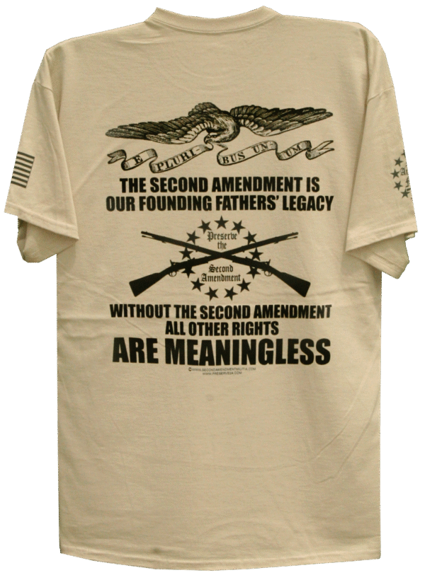 The Second Amendment is one of our most fundamental rights. Truly this is indeed a legacy from our founding fathers that we should be proud and grateful for. As the t-shirt states, “Without the Second Amendment, All Other Rights Are Meaningless”, and that is because if all else fails, that is the final, and only way, we can insure all of our other rights can be protected.