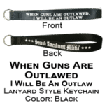 These keychains are approximately 12″ long and 1″ wide, made of soft, yet durable nylon. These keychains are not the wimpy imported ones you might find elsewhere. These are rugged and long lasting, just like the Second Amendment, and Made in the U.S.A.